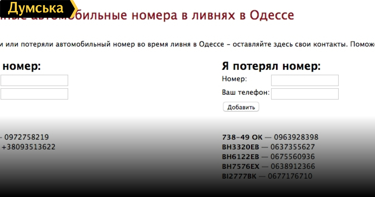 Новый сервис: одесситы помогают друг другу находить утерянные из-за ливня автономера