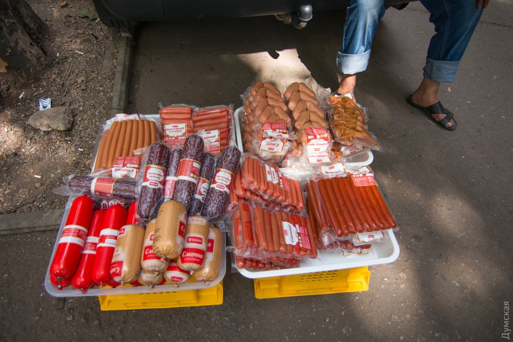 Перед входом в мечеть на Ришельевской (Арабский культурный центр) в честь праздника продают халяльные полуфабрикаты, специально привезенные из Ровно: колбасу и сосиски.