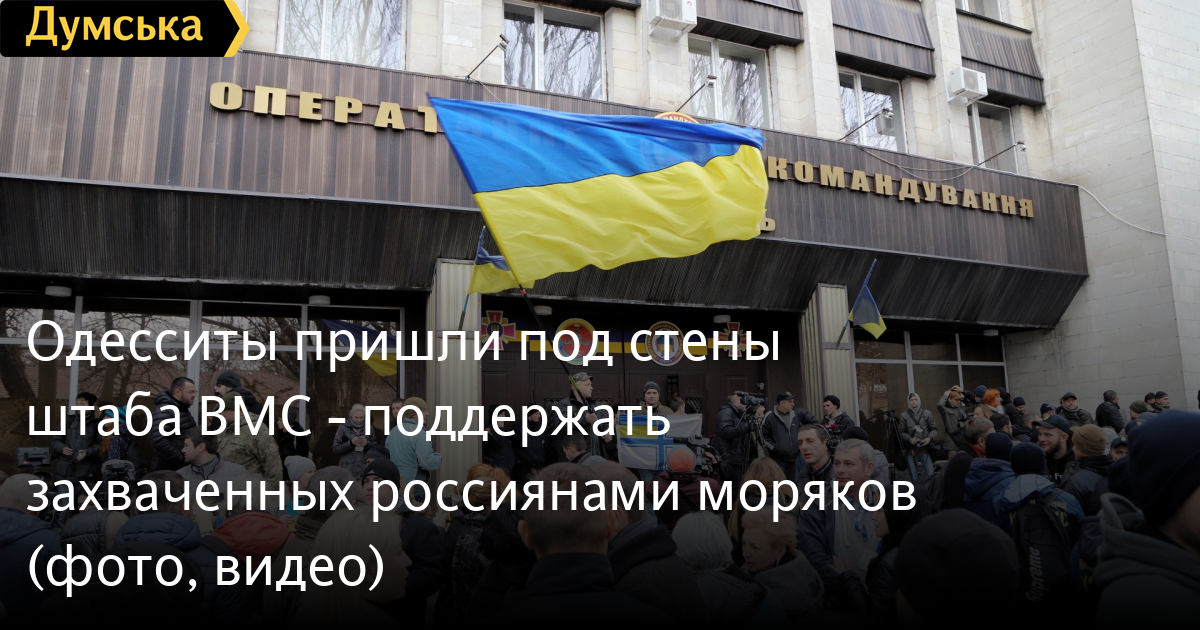 Около 200 одесситов пришли сегодня под стены штаба Военно-морских сил Украины, чтобы высказать поддержку захваченным россиянами морякам. Митинг прошел мирно.