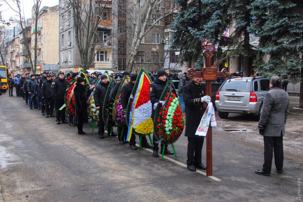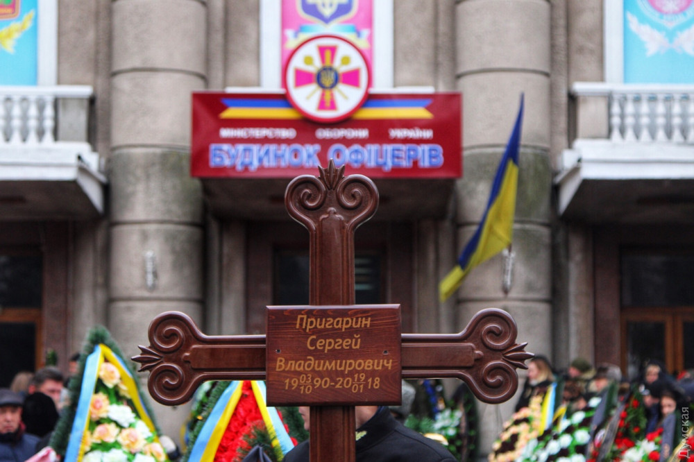 Сегодня утром одесситы простились с участковым инспектором Сергеем Пригариным, погибшим в перестрелке на улице Новосельского. Траурная церемония прошла в гарнизонном Доме офицеров на Пироговской, передает корреспондент «Думской».