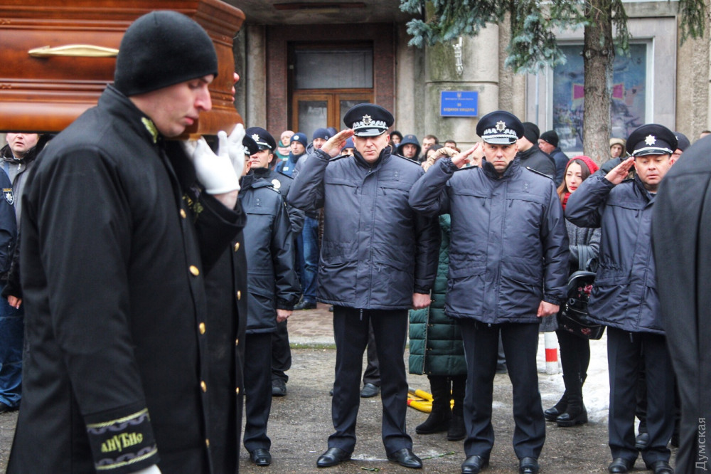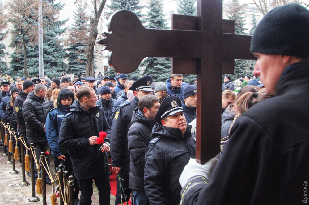 Отдать дань уважения погибшему пришли сотни людей: коллеги полицейского, представители органов власти, школьные друзья, просто горожане. Присутствовал на панихиде и замминистра внутренних дел Вячеслав Аброськин. Он передал семье соболезнования от главы ведомства Арсена Авакова и руководителя Нацполиции Сергея Князева.