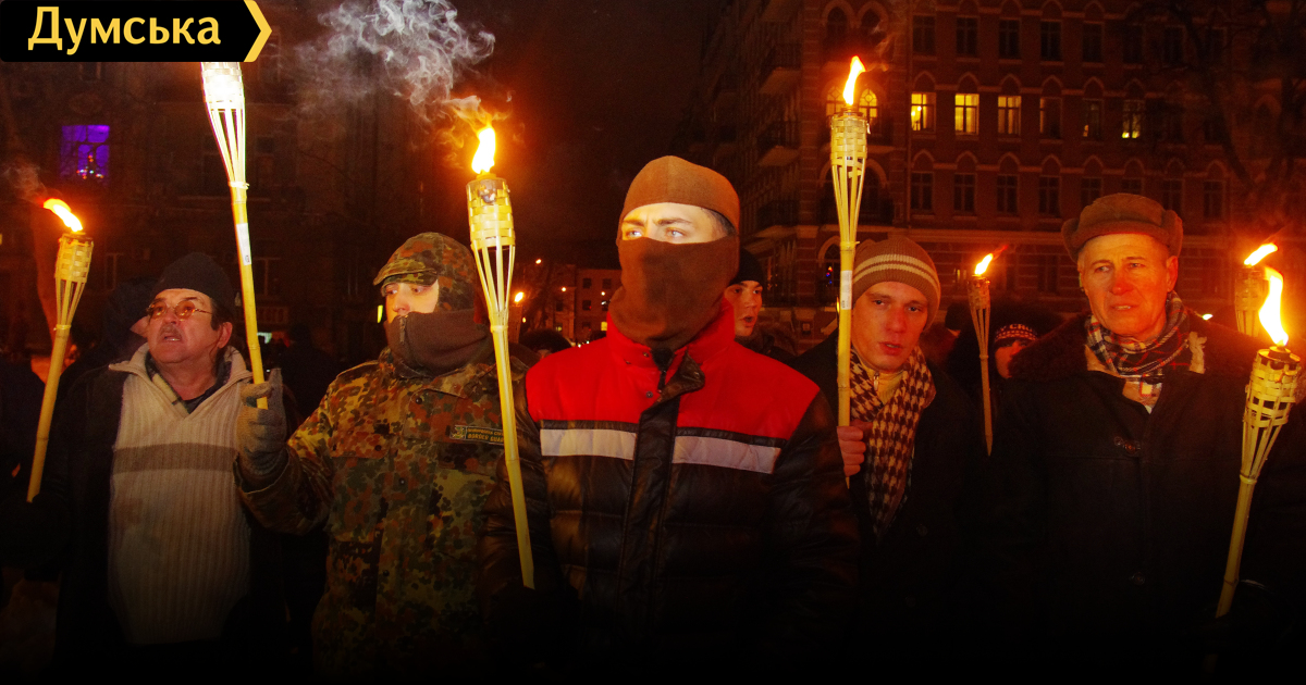 Я лично только за то, чтобы почитать память Степана Бандеры. Но для чего нужны факельные шествия? Во-первых, это вызывает неприятные ассоциации (нацистская Германия 1930-х), во-вторых, создаёт картинку для пропагандистского рашен-тв (вот де, какой у них фашизм), в-третьих, отпугивает некоторых неопределившихся граждан. Подобные мероприятия нужны, но абсолютно в другой форме.