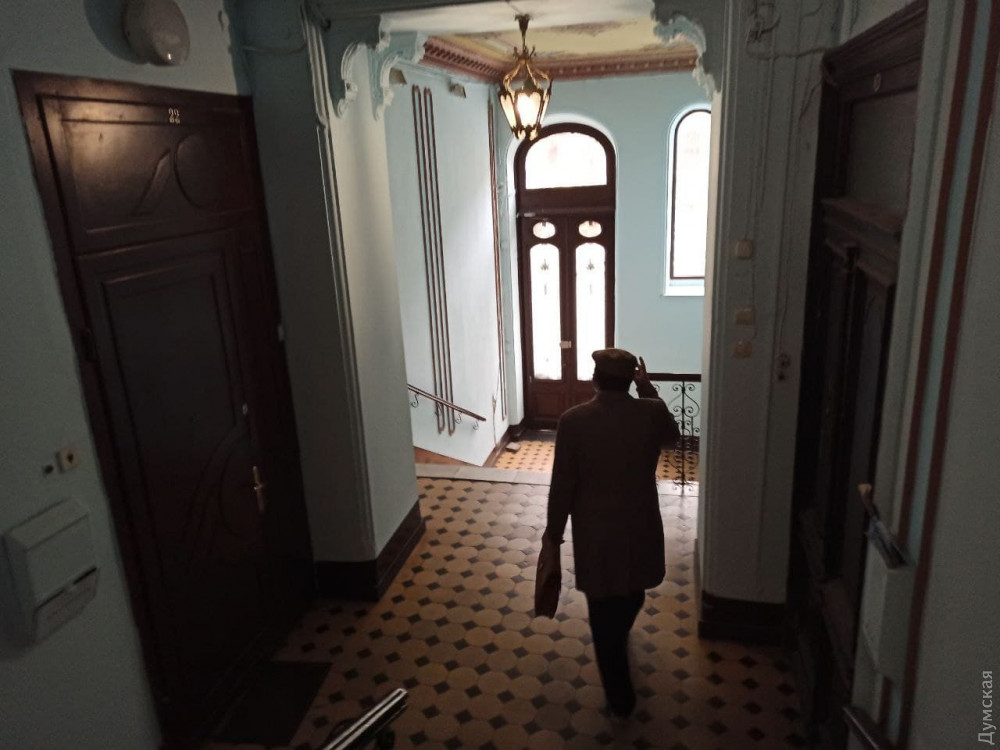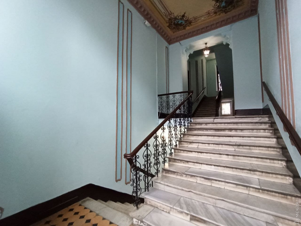 Тогда же жильцы за свой счет привели в порядок парадную. Частично заменили мраморные ступени, кованые элементы лестничных перил, обновили стены. Одесситы специально приглашали реставраторов, чтобы восстановить старинную роспись на потолке первого этажа.