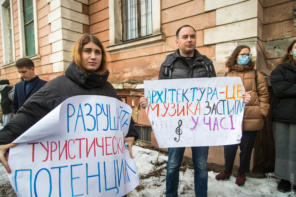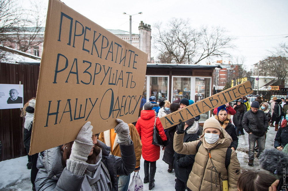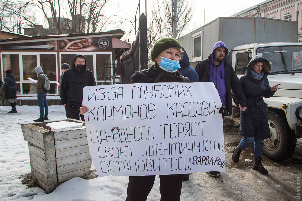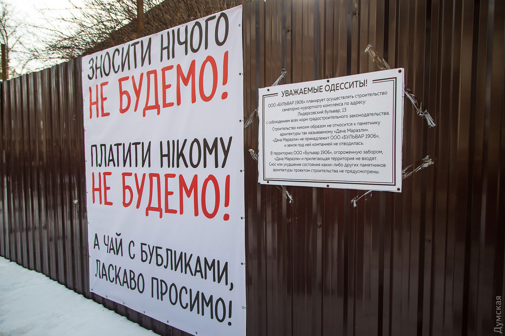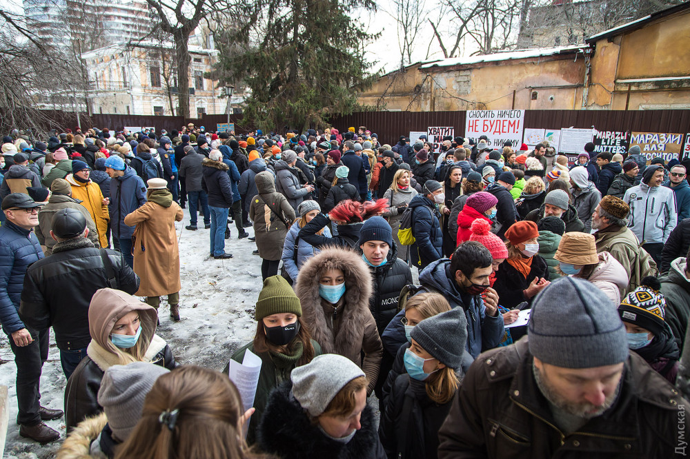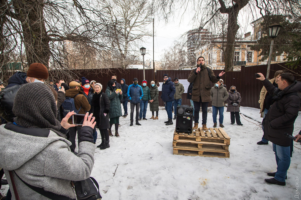 Обеспокоенные судьбой дореволюционных особняков на Лидерсовском бульваре одесситы в очередной раз собрались у стен так называемой Дачи Маразли, что возле парка Шевченко.