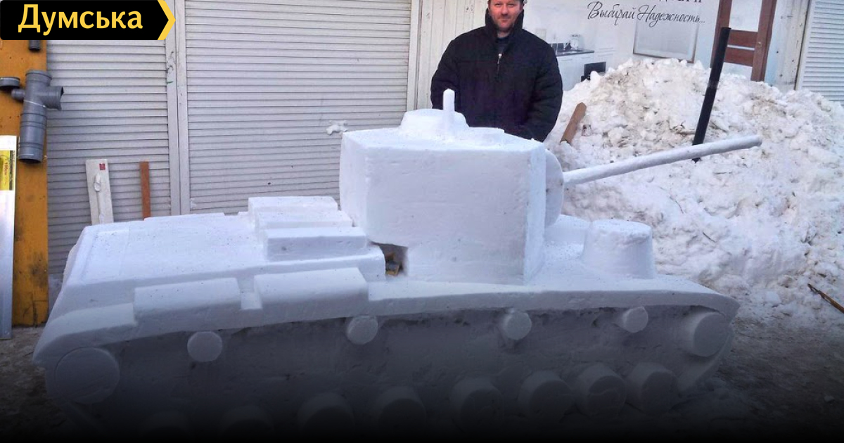 Здесь местные скульпторы в свободное от работы время превратили груды снега в военную технику: советские танки КВ-5 и Т-54 времен Второй мировой, систему залпового огня «Катюша», а также яхту.