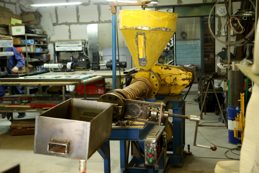 В цехе «Дорогоцінний пластик. Precious plastic Ukraine» работают трое — сам Евгений Хлебников, его помощница Екатерина и волонтер Влад.