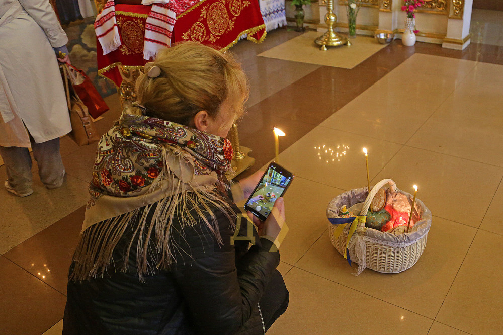 Больше было желающих освятить свои паски, чем прихожан. Просто так, в дань моде. Люди шутили, смеялись и прикалывались, как это было у Св. Ильинского мужского монастыря, где вокруг священника образовалась лужа. Хочется верить, что это была вода, которой он брызгался в людей. :-)