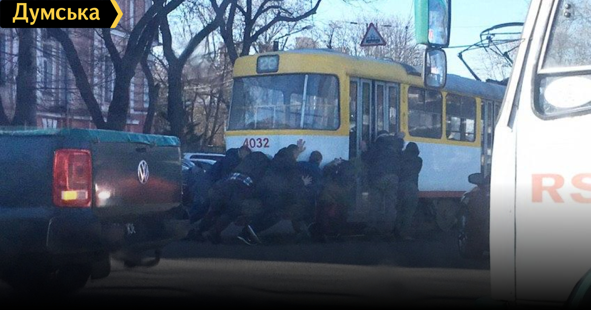 В центре Одессы пассажиры толкали обесточенный трамвай: водителя из-за этого отстранили от работыОчевидцы зафиксировали, как возле парка Шевченко группа мужчин толкала трамвай. Заходивший на круг вагон неожиданно заглох на Лидерсовском бульваре, а сдвинуться с места многотонной махине помогли пассажиры. В пресс-службе КП «Одесгорэлектротранс» данный инцидент подтвердили и пообещали наказать водителя. «Вагон стал под пересечение и обесточился. По должностной инструкции водитель в подобных случаях должен вызвать аварийный вагон, чтобы его толкнули. Однако на практике случается так, что пассажиры сами предлагают помощь, чтобы не терять время. Опять-таки, согласно инструкции, если пассажиры хотят толкать трамвай, водитель обязан воспрепятствовать этому. Водитель данного вагона уже отстранена от работы на линии, ее ждут дисциплинарные санкции», — сообщили в пресс-службе предприятия. СМЕРТЬ РОСІЙСЬКИМ ОКУПАНТАМ! Помітили помилку? Виділяйте слова з помилкою та натискайте control-enter Новини по цій темі: 12 лютого 2025: Транспорт офлайн: одесити не побачать трамваїв і тролейбусів у смартфонах щонайменше два тижні 28 листопада 2024: Зростання цін на проїзд в одеському електротранспорті: як воно відіб`ється на пасажиропотоці та чи є альтернатива? 5 листопада 2024: В Одесі реконструюють розворотне кільце сьомого трамвая: зупиняти рух маршруту «Північ-Південь» не будуть 11 жовтня 2024: Щоб не сильно провалювався: будівництво дренажної системи для колишнього узвозу Маринеско в Одесі обійдеться майже в 40 млн грн |