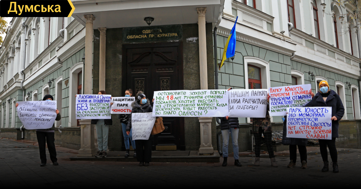 Сегодня утром жители Большого Фонтана пикетировали здание прокуратуры Одесской области с требованием вернуть в собственность громады незаконно отчужденные участки рекреационной зоны в парке «Юность».
