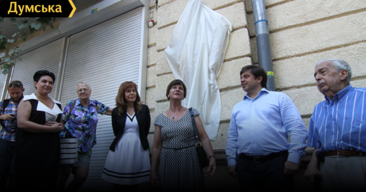 На стене дома номер 9 по Преображенской состоялось торжественное открытие мемориальной доски Давиду Бурлюку, известному художнику и поэту, одному из основоположников русского футуризма, властителю дум своего поколения, дерзкому творцу. Инициатором и меценатом установки мемориальной доски Давиду Бурлюку стал член президентского совета Всемирного клуба одесситов Евгений Деменок, выполнил ее скульптор Александр Токарев. Специально на это событие из Праги приехала внучатая племянница Бурлюка Яна Коталикова, свои поздравления также передали внучка поэта и художника Мэри Бурлюк Холт из Канады и его правнук из Нью-Йорка Давид Бурлюк. «Бурлюк был одноглаз, — рассказал Евгений Деменок, – не случайно он называл себя в стихах «сатир несчастный, одноглазый, доитель изнуренных жаб»…» Но конечно, славен был Давид Давидович Бурлюк далеко не только этим. Он учился в Одесском художественном училище дважды — в 1900-1901 и в 1910-1911 годах (во второй раз местом проживания Бурлюка был как раз дом на Преображенской). К Одессе причастны почти все члены большого семейства Бурлюков — в Одесском художественном училище в 1910-11 годах учился также Владимир Бурлюк, Людмила Бурлюк участвовала в двух выставках Товарищества южнорусских художников, Надежда Бурлюк выставляла свои рисунки во втором Салоне Издебского, Николай Бурлюк служил в Одессе в 1919 году. И даже мать большого семейства, Людмила Иосифовна, участвовала в Салонах Издебского под девичьей фамилией Михневич. «Рад, что Евгений подхватил идею увековечить память Бурлюка, – рассказал вице-президент Всемирного клуба одесситов Евгений Голубовский. — Он съездил в Чехию, нашел родственников поэта, и готовит к печати солидную монографию о Бурлюке». Автор — Ирэн Адлер, фото Владимира Андреева СМЕРТЬ РОСІЙСЬКИМ ОКУПАНТАМ! Помітили помилку? Виділяйте слова з помилкою та натискайте control-enter