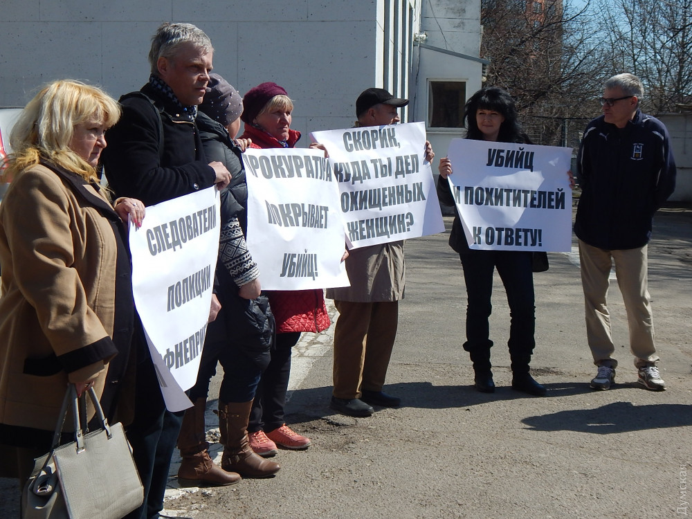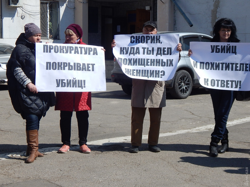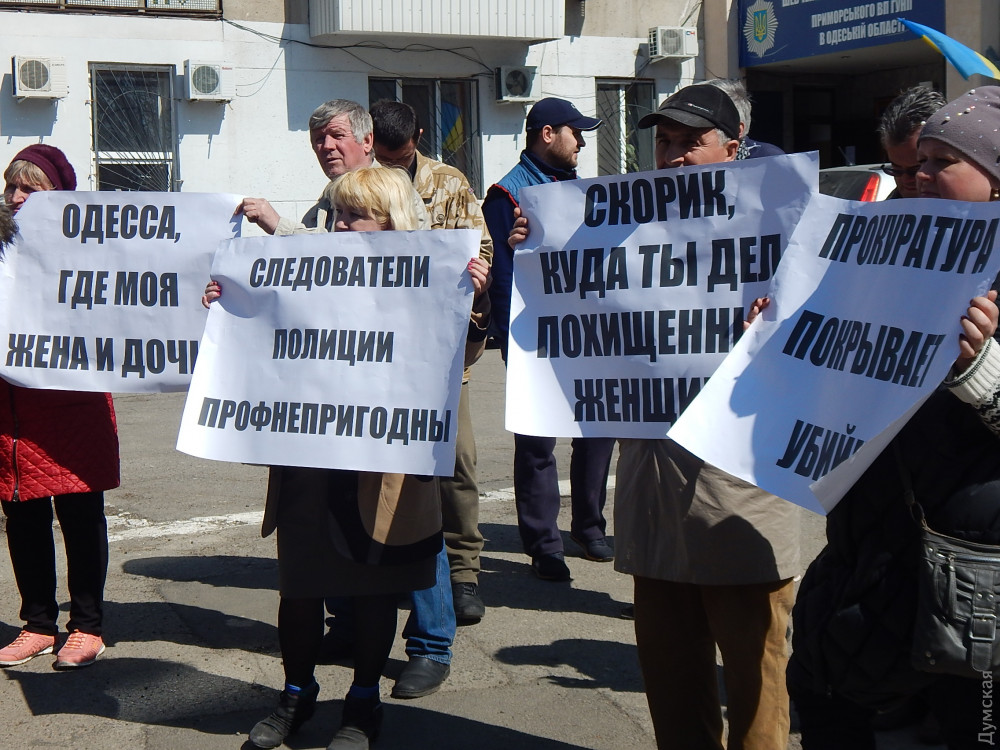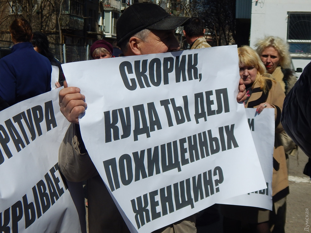 3 апреля Скорик должен был приехать для дачи показаний в Шевченковский отдел полиции. Перед зданием собрались люди с плакатами в руках: «Убийц и похитителей к ответу!», «Скорик, где ты дел похищенных людей?», «Одесса, где моя жена и дочь?», «Следователи профнепригодны!».