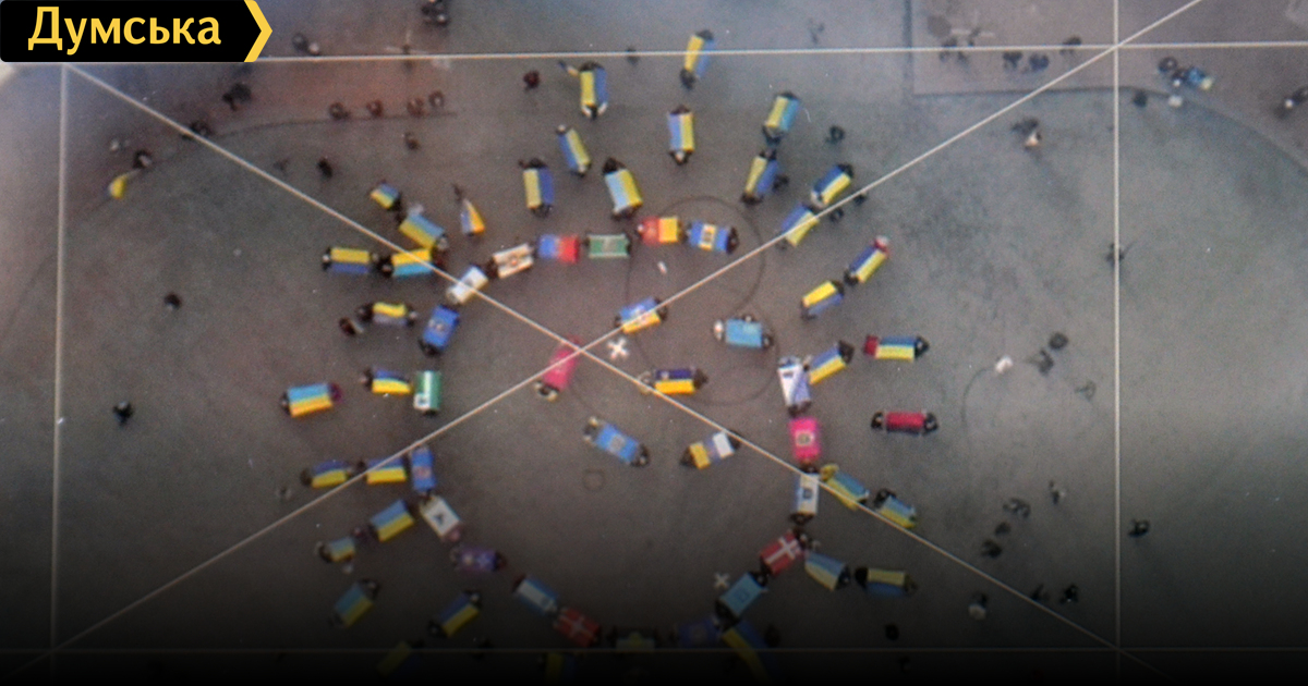 Одесситы выстроились в живую цепь в виде солнца из флагов областей Украины