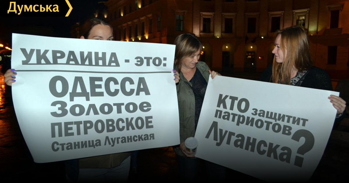 В Одессе несколько десятков активистов патриотических организаций провели акцию в поддержку жителей Станицы Луганской, Золотого и Петровского, которые выступают против отвода украинских войск от этих населенных пунктов. Напомним, речь идет о создании так называемых «зон безопасности», предусмотренных очередным соглашением в Минске. По словам волонтера 28-й механизированной бригады Оксаны Алексевой, жители будущих «зон» опасаются, что окажутся в оккупации или на нейтральной полосе (еще неизвестно, что хуже). Они обратились к общественности с просьбой достучаться до власти, чтобы та не отводила части Вооруженных сил. «К ним уже поступают угрозы от российских террористов, которые заявляют, что как только отойдет ВСУ, они зайдут в эти населенные пункты и отомстят проукраински настроенному населению», — отметила волонтер. Фото — Андрей Колисниченко СМЕРТЬ РОСІЙСЬКИМ ОКУПАНТАМ! Помітили помилку? Виділяйте слова з помилкою та натискайте control-enter |