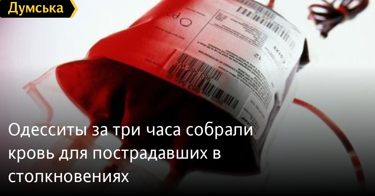 К 12 часам 3 мая на Одесской областной станции переливания крови 104 человека сдали кровь для пострадавших во вчерашних столкновениях. Многие одесситы продолжают стоять в очереди для сдачи крови. Как сообщает пресс-служба горсовета, одесские медики продолжают работать в усиленном режиме, оказывая пострадавшим необходимую помощь. «Мэрия Одессы благодарит всех, кто откликнулся в эти дни на призыв о помощи. На данный момент необходимости в дополнительном заборе крови для пострадавших нет», — говорится в сообщении. Одесситы, желающие сдать кровь для общего банка крови, которая поможет пострадавшим в ДТП и другим больным, могут приходить в областную станцию переливания крови (на Бисквитный переулок, 2) с понедельника, 5 мая, с 8:00 до 14:30. СМЕРТЬ РОССИЙСКИМ ОККУПАНТАМ! Заметили ошибку? Выделяйте слова с ошибкой и нажимайте control-enter |