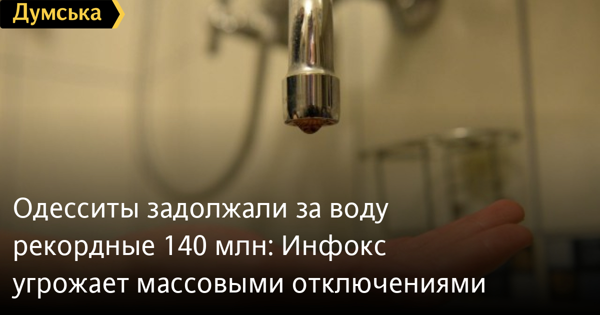 Филиал «Инфоксводоканал» сообщает, что по состоянию на 1 октября общий долг населения за потребленную воду превысил 140 миллионов гривен. Таким образом, были побиты рекорды задолженности за всю историю одесского водоканала.