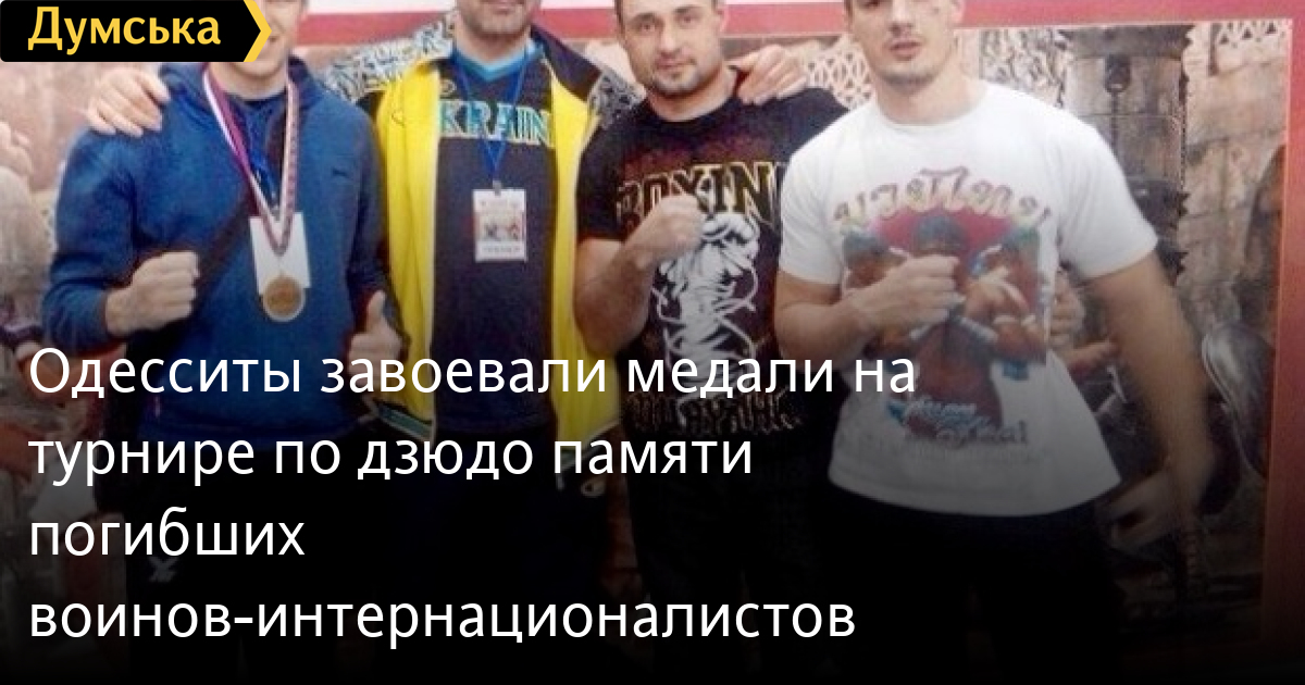 Одесситы завоевали медали на турнире по дзюдо памяти погибших воинов-интернационалистовВоспитанники одесской спортивной школы № 4 заняли призовые места во всеукраинском турнире по дзюдо памяти погибших воинов-интернационалистов, который проходил 15 и 16 февраля в городе Луцк. Как сообщает пресс-служба горсовета, в соревнованиях принимали участие около сотни спортсменов из всех областей Украины. По результатам чемпионата одесситы заняли призовые места в разных категориях: Победители получили кубки, медали и грамоты. СМЕРТЬ РОСІЙСЬКИМ ОКУПАНТАМ! Помітили помилку? Виділяйте слова з помилкою та натискайте control-enter |
