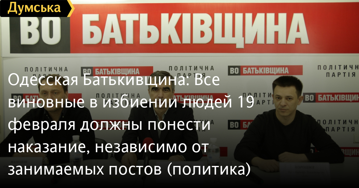 Одесская «Батькивщина»: Все виновные в избиении людей 19 февраля должны понести наказание, независимо от занимаемых постов (политика)26 марта представители Одесской городской организации ВО «Батькивщина» приняли участие в брифинге областной прокуратуры, который состоялся благодаря активности и настойчивости ВО «Батькивщина», предупредившей городские власти о намерении провести в этот день митинг-протест у здания облпрокуратуры. «Батькивщина», неоднократно обращавшаяся к правоохранительным органам, руководству города и области с требованием найти виновных в циничном и жестоком избиении участников мирной акции 19 февраля 2014 года, планировала вновь требовать у прокуратуры объективного и честного расследования. По итогам брифинга «батькивщиновцы» провели пресс-конференцию. Как заявили активисты партии, отчет прокуратуры вызвал еще больше вопросов о ходе расследования. После года следствия и активных призывов со стороны общественности и политических сил наказать виновных правоохранительные органы наконец обнародовали первые результаты следствия. Как отметили участники пресс-конференции, несмотря на сотни допрошенных и имеющиеся данные о количестве «титушек», их месте проживания, средствах перемещения, прокуратурой выявлен лишь один подозреваемый. В частности, следствие рассматривает на эту роль бывшего заместителя областного МВД Дмитрия Фучеджи, который на данный момент находится в розыске и не может предстать перед судом. Также в прокуратуре неоднократно допрашивали экс-губернатора Одесской области Николая Скорика, но оснований для обвинения так и не нашли. В целом та информация, которую прокуратура предоставила на брифинге, не проливает свет на исполнителей преступления и уж тем более на его заказчиков. Глава ГО «Комитет по борьбе с организованной преступностью и коррупцией» Евгений Манохин заявил: «Считаю, что следствие проводится крайне неэффективно и искусственно затягивается. К уголовной ответственности должны быть привлечены все сотрудники органов внутренних дел, как отдававшие, так и выполнявшие преступные приказы своих командиров. Фучеджи – всего лишь один из множества сотрудников, причастных к данному происшествию. Кто отдавал приказы Фучеджи и почему его подчиненные безропотно выполняли преступные приказы – вот главные вопросы, на которые должно ответить следствие». «Сегодняшний брифинг в Одесской областной прокуратуре дал понять, что мы живем в стране «верховенства права». Сотрудники прокуратуры имеют право не расследовать резонансные преступления! Бездействие сотрудников прокуратуры заставляет задуматься о целесообразности существования этого органа. По крайней мере, в том виде и состоянии, в котором прокуратура находится на сегодняшний день», – отметил в свою очередь глава Малиновской районной партийной организации ВО «Батькивщина» Владимир Хороших. «Мы не прекратим добиваться справедливости и будем писать обращение к Генеральному прокурору Украины с просьбой открыть против депутата Верховной Рады Украины Николая Скорика, занимавшего в то время пост председателя ОГА, уголовное дело за преступное бездействие, которое привело к событиям 19 февраля 2014 года, и на основании этого внести на рассмотрение Верховной Рады представление о снятии с него депутатской неприкосновенн