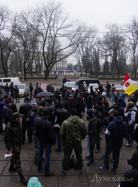 Через дорогу, у админздания №2 облсовета, уже дежурит «народная дружина» — пророссийская, само собой.