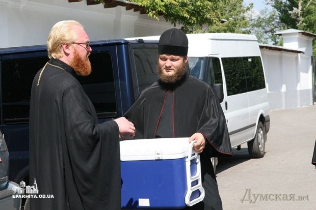 Одесские священники доставили в Свято-Успенскую Святогорскую Лавру (Донецкая область) гуманитарную помощь для жителей востока Украины.