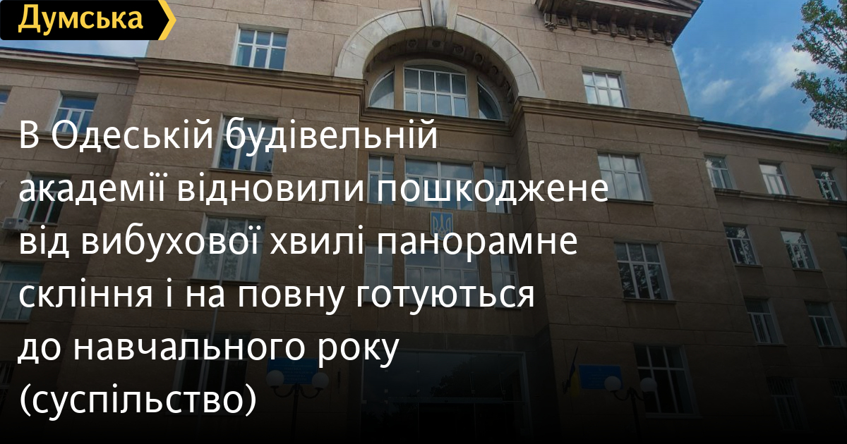 Нагадаємо, в ніч на 14 серпня 2023 року внаслідок обстрілу російськими військами пошкоджень зазнали, зокрема, корпуси та гуртожитки Одеської державної академії будівництва та архітектури. Частина з них - пам'ятки архітектури місцевого значення. Найбільше дісталося корпусу Будівельно-технологічного інституту академії та гуртожитку №3. Там вибиті вікна, а також частина дверей, постраждала і вхідна група головного корпусу. У двох будівлях проблеми з дахом.
