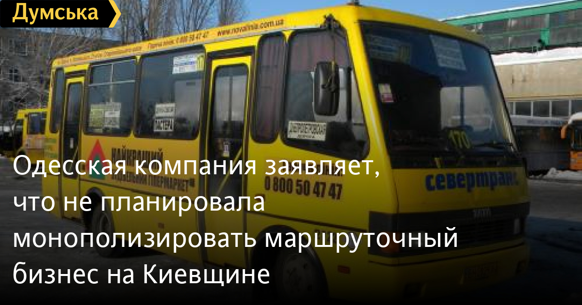 Одесское автотранспортное предприятие «Севертранс» (принадлежит крупному бизнесмену, владельцу центрального автовокзала Сурену Сардаряну) заявляет, что никогда не была монополистом на пригородных маршрутах Киевской области, а выиграла тендер лишь по 14 маршрутам из 200.