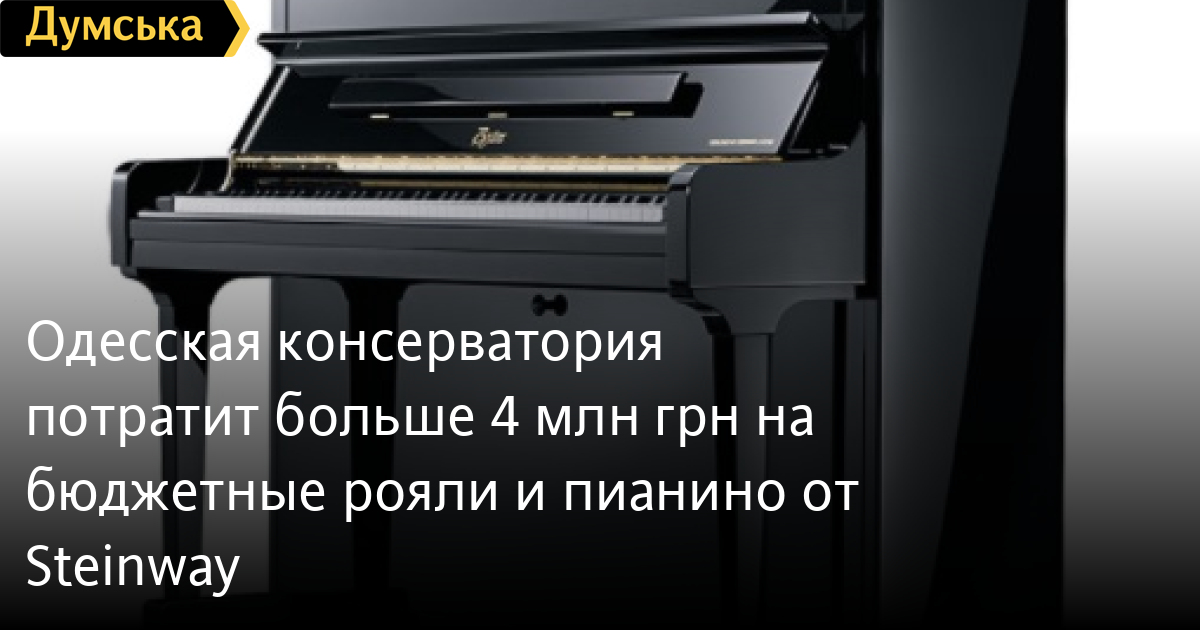 Одесская консерватория потратит больше 4 млн грн на бюджетные рояли и пианино от Steinway4 млн 450 тысяч грн намерена потратить Одесская музыкальная академия имени А.В. Неждановой на новые музыкальные инструменты. Соответствующий тендер вуз объявил сегодня, передает корреспондент «Думской». Тендерные предложения принимаются до 12 ноября, а 13-го состоится аукцион. Всего консерватория хочет приобрести четыре инструмента: два рояля GP-178 PE Boston Performance Edition или эквивалент и два пианино — UP-118 PE и UP-126 PE той же торговой марки или эквивалент. Boston — это бренд инструментов среднего класса, созданный компанией Steinway & Sons. Они изготавливаются из менее дорогих материалов, чем настоящие «стенвеи». Их конструкция полностью разработана Steinway & Sons, но производство осуществляется на фабриках других изготовителей, в частности в Японии, на мощностях Kawai Musical Instruments. В год производится примерно 5 тысяч инструментов Boston — пять моделей роялей и четыре пианино. Boston Performance Edition — это обновленная концертная серия, которая выпускается с использованием нескольких новых патентов Steinway & Sons. СМЕРТЬ РОССИЙСКИМ ОККУПАНТАМ! Заметили ошибку? Выделяйте слова с ошибкой и нажимайте control-enter |
