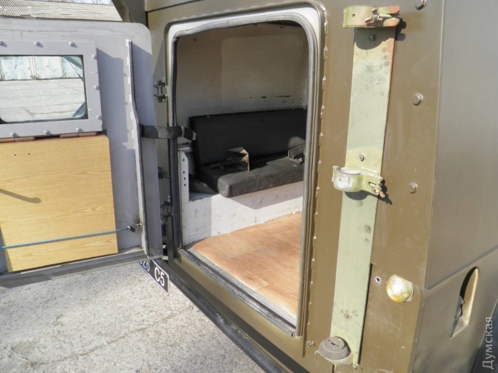 «Заменили амортизаторы, поставили от маршрутки «Богдан» (старые были не предназначены для выдерживания такой массы), заменили пробитое пулей пассажирское стекло, усилили ходовую, переделали салон автомобиля, установили раскладной столик для карт. Дополнительно оборудовано место под телескопическую мачту, поставлена еще одна радиостанция рядом с водителем, также для большего комфорту добавлена система для подзарядки мобильных устройств. Машина перекрашена», — говорит Лоренц.