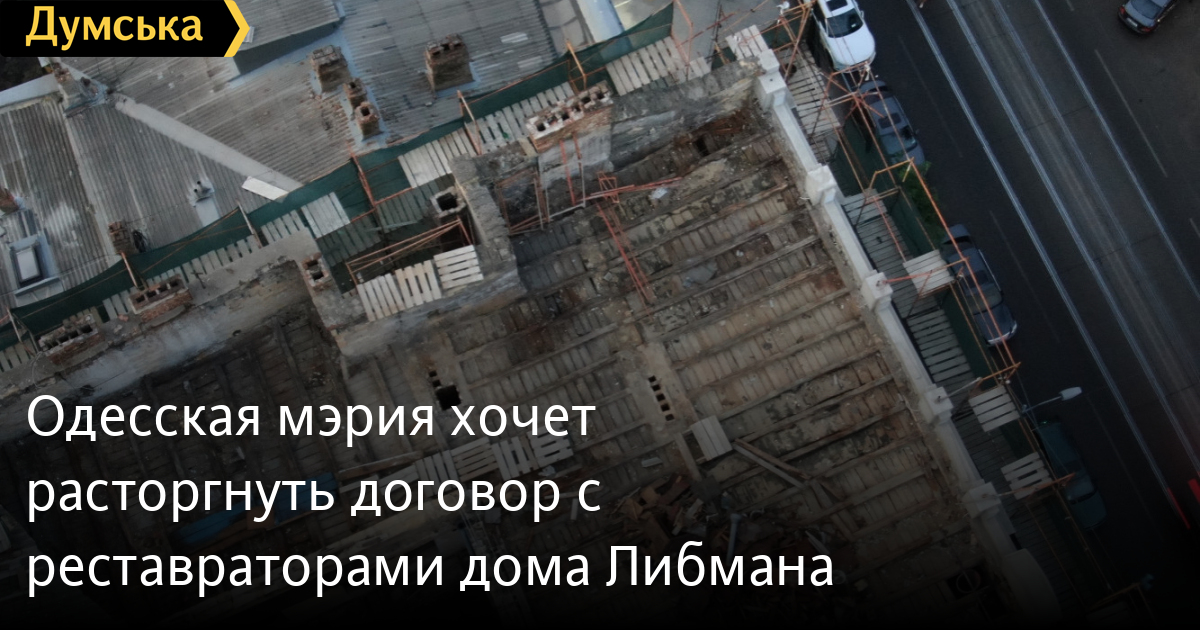 Мэрия Одессы хочет расторгнуть договор с реставраторами дома Либмана — памятника архитектуры на Преображенской, 23, оставшегося без крыши, передает корреспондент «Думской».