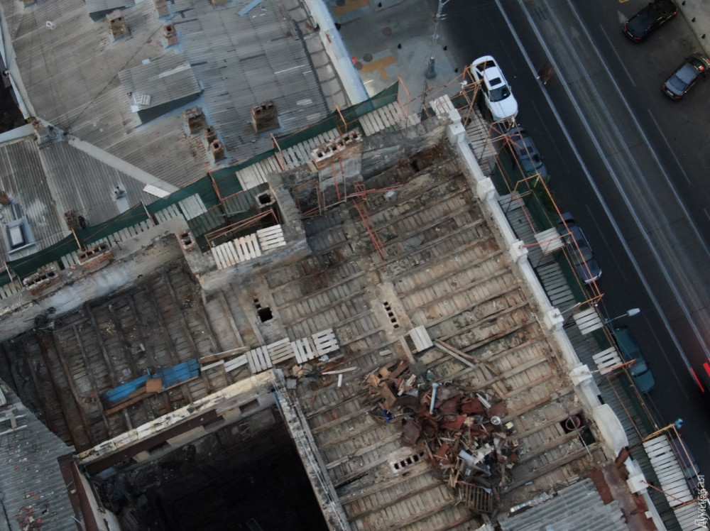 По состоянию на сегодняшний день мы не получили от заказчика конструктивного решения по узлам крыши и усилению фундамента. Нам известно лишь то, что проект ремонтно-реставрационных работ откорректирован и отправлен на экспертизу в одесский филиал госпредприятия «Укрдержбудекспертиза». Продолжить работы мы сможем только после того, как получим прошедший экспертизу проект».