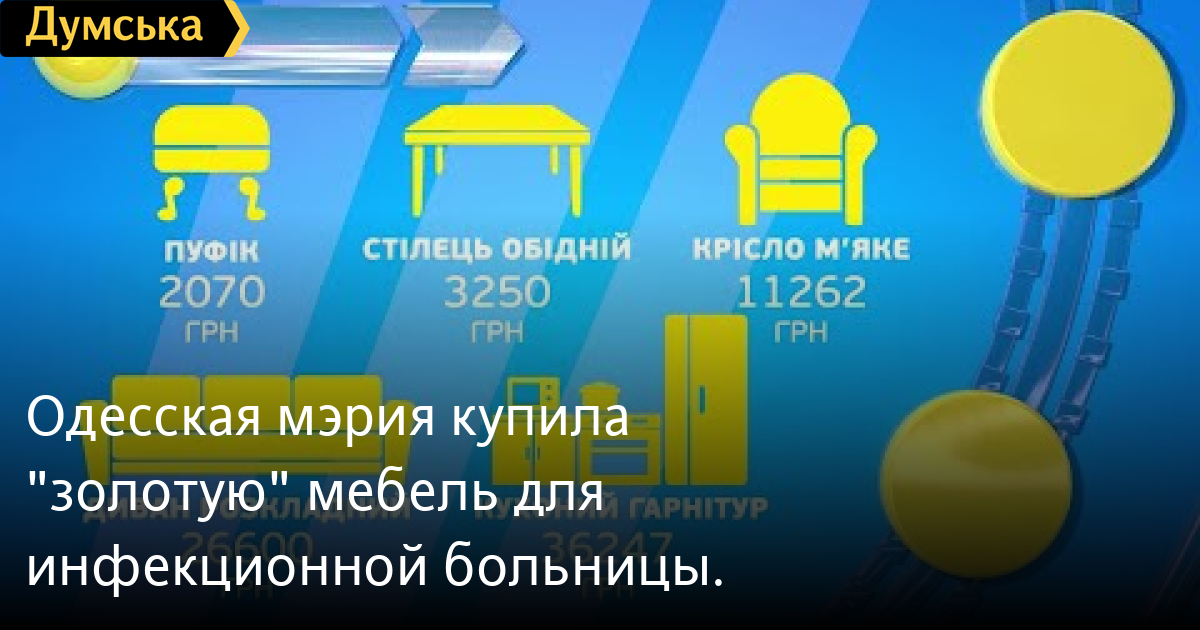 Пир во время чумы. Одесская мэрия купила «золотую» мебель для инфекционной больницы. Цены — заоблачные. Тут и пуфик - свыше 2 тысяч гривен, а кресло — так за 11 тысяч перевалило. Подчиненные труханова говорят — все для врачей.