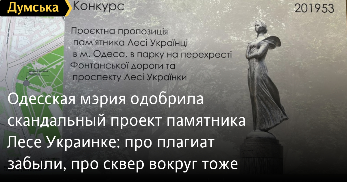 Одесская мэрия одобрила скандальный проект памятника Лесе Украинке: про плагиат забыли, про сквер вокруг тожеПроектное предложение памятника Лесе Украинке, которое ранее обвиняли в плагиате, утвердили в Одесской мэрии. Как передает корреспондент «Думской», члены исполкома голосовали за такое решение единогласно, причем вообще без обсуждения. Речь идет о работе, выигравшей в скандальном конкурсе в феврале. Городские власти официально закрепили его результаты, хотя памятник подозрительно напоминает скульптуры поэтессы 1970-х гг, установленные в Киеве. Процесс самого конкурса скрывали от общественности, а участники были в неравных условиях. Кроме того, в решении исполкома есть визуализация только самого памятника, как будет выглядеть благоустройсво вокруг — непонятно. Хотя в решении четко говорится: «Утвердить проектное предложение для строительства памятника Леси Украинцы в городе Одессе с благоустройством прилегающей территории (прилагается)». В мэрии пояснили, что далее этот вопрос вынесут на сессию. Архитектор Николай Чепелев открыто называет принятое решение формальным и не проясняющим дальнейшую судьбу памятника Лесе Украинке. «Решение фиксирует результат конкурса. Что такое утверждение проектного предложения — непонятно. Речь должна была идти о принятии за основу этого проектного предложения и дальнейших действиях — его корректировке с учетом предложений и замечаний общественности, разработке проектно-сметной документации, установке памятника и так далее. С определением источников финансирования соответственно. Ни один из последующих этапов не определен, что дальше будет с реализацией памятника — непонятно. Имеем то, что имеем», — подчеркнул Чепелев. Напомним, решение об установке памятника украинской поэтессе мэрия приняла еще 17 апреля 2025 года. Скульптура появится в сквере Леси Украинки (ранее Космонавтов) на пересечении Фонтанской дороги и Артиллерийской улицы. В августе исполнительный комитет горсовета объявил о проведении конкурса, чтобы выбрать не только монумент, но и лучший вариант благоустройства территории вокруг него. Слева направо: Леся Украинка из Национального музея литературы, конкурсная и с одноименной площади в Киеве СМЕРТЬ РОССИЙСКИМ ОККУПАНТАМ! Заметили ошибку? Выделяйте слова с ошибкой и нажимайте control-enter Новости по этой теме: 19 сентября 2025: Депутатско-чиновничий десант: в Одессе пытаются спасти от транспортного коллапса Золотой Берег (фоторепортаж) 9 августа 2025: Забегаловки, поваленные деревья и гектар развлечений: полиция вспомнила об одесском парке, обезображенном бывшим арендатором 13 июня 2025: Суд отобрал Дюковский сад Одессы у фирмы-"пустышки" и вернул городу: по долгам никто платить не будет |