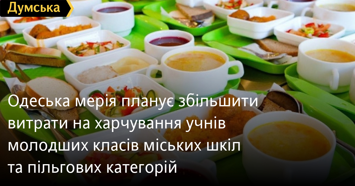 Одеська мерія планує збільшити витрати на харчування учнів молодших класів міських шкіл та пільгових категорійВитрати на харчування учнів молодших класів міських шкіл та пільгового контингенту школярів має намір збільшити мерія Одеси. Відповідне питання розгляне на одному із найближчих засідань виконком міськради, а потім проект винесуть на сесію муніципальних зборів, повідомляє кореспондент «Думської». Наразі місто витрачає на харчування одного молодшокласника 23 грн на день. Якщо рішення ухвалять, з 1 листопада вартість безкоштовного сніданку зросте до 43 грн 20 копійок. Вартість харчування одного пільговика збільшиться із 30 до 50 грн. Як пояснила «Думській» директор муніципального департаменту освіти Олена Буйневич, необхідність збільшення витрат пов'язана із зростанням цін на продукти. «За 23,50 дати затверджене меню неможливо, — каже вона. — Ми мали три варіанти: відмовитися від харчування за рахунок міста, прибрати з меню сніданок як такий і дати випічку з напоєм (це порушує норми) або залишити меню, але підвищити вартість. З урахуванням ситуації вирішили продовжити харчування цього року за рахунок бюджету міста». Помітили помилку? Виділяйте слова з помилкою та натискайте control-enter