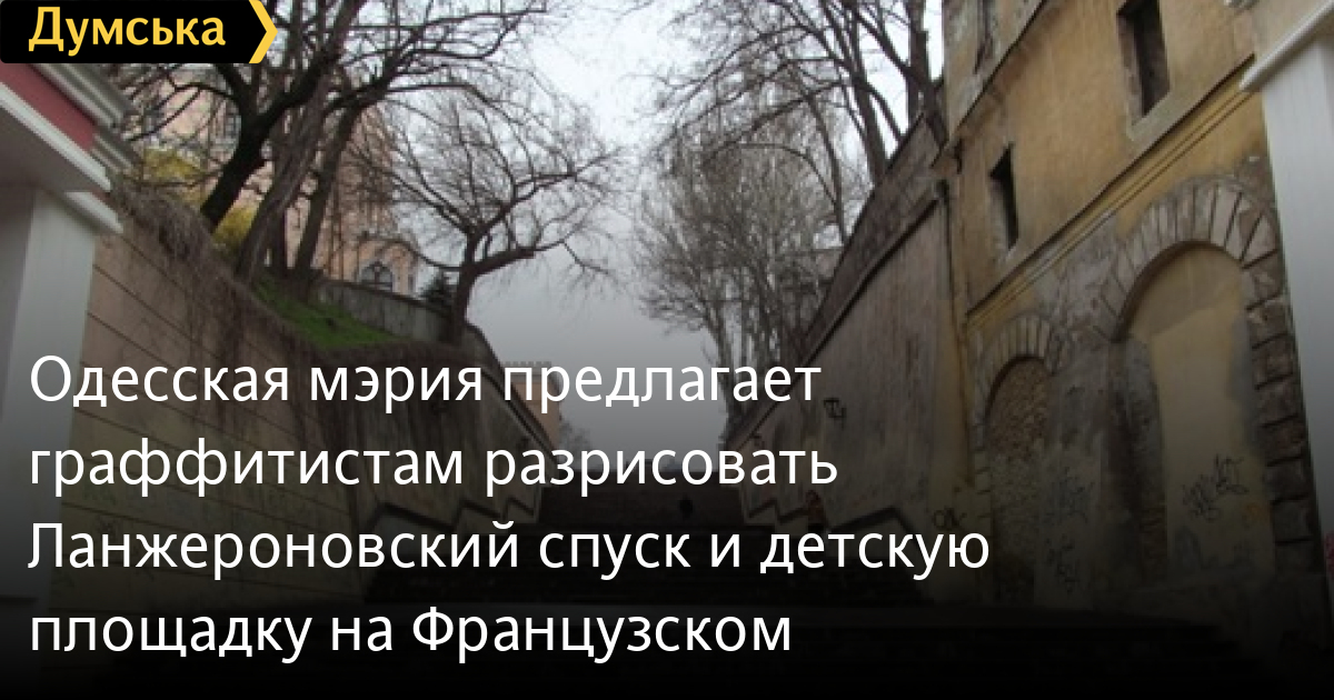 Одесский горсовет объявляет о начале конкурса лучших рисунков граффити, которые потом украсят стены на Ланжероновском спуске (лестница, соединяющая одноименную улицу с Таможенной площадью) и на детской площадке на Французском бульваре.