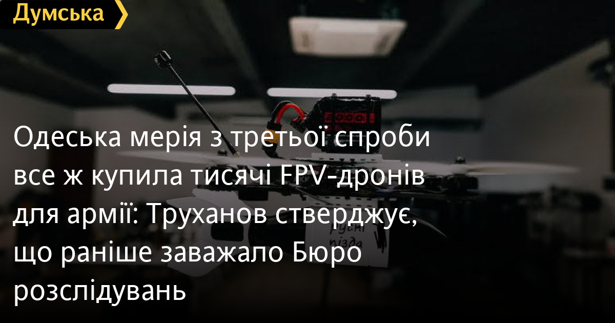 Зазначимо, що FPV-дрони місто змогло закупити лише з третьої спроби. Тендери, оголошені в жовтні та листопаді, чиновники скасували, відхиливши всі заявки потенційних продавців. За нашими даними, у приватних бесідах мер Одеси Геннадій Труханов розповідає, що торги не відбулися через тиск з боку Державного бюро розслідувань, яке нібито угледіло в них корупційну складову. Так це чи ні, сказати складно, головне, мабуть, що закупівля відбулася.