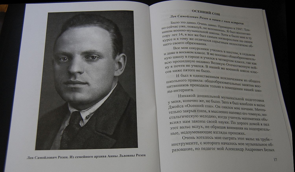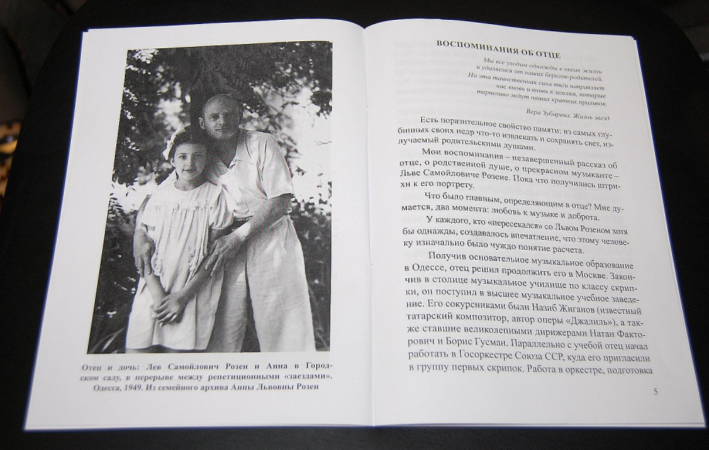 Концерт состоялся в Одесском Доме-музее имени Н. К. Рериха, да и само издание в условиях военного времени стало возможным благодаря инициативе и поддержке директора музея Елены Петренко. Речь пошла о музыканте, которого еще многие в городе помнят, о Льве Самойловиче Розене (1908-1980), известном одесском исполнителе и педагоге. Автором книги стала его дочь, самый известный городе лектор-музыковед, заслуженный работник культуры Украины Анна Розен.