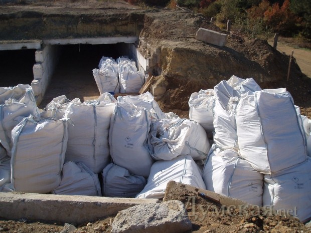 Во-вторых, на фотографиях четко видно, что бункер, о котором говорят авторы документа, никак не может быть свежевозведенным. Активисты просто не знают, как строятся подобные объекты. Обычно это происходит следующим образом. Сначала заливается бетонная площадка, вокруг которой ставят стены. Внутрь закладываются ядохимикаты. Затем склад перекрывают сверху бетонными плитами и только после этого сверху насыпается глина и грунт. На фото же видна совсем другая картина, что позволяет сделать вывод: это не только что построенное хранилище, а старый склад, который недавно вскрыли.