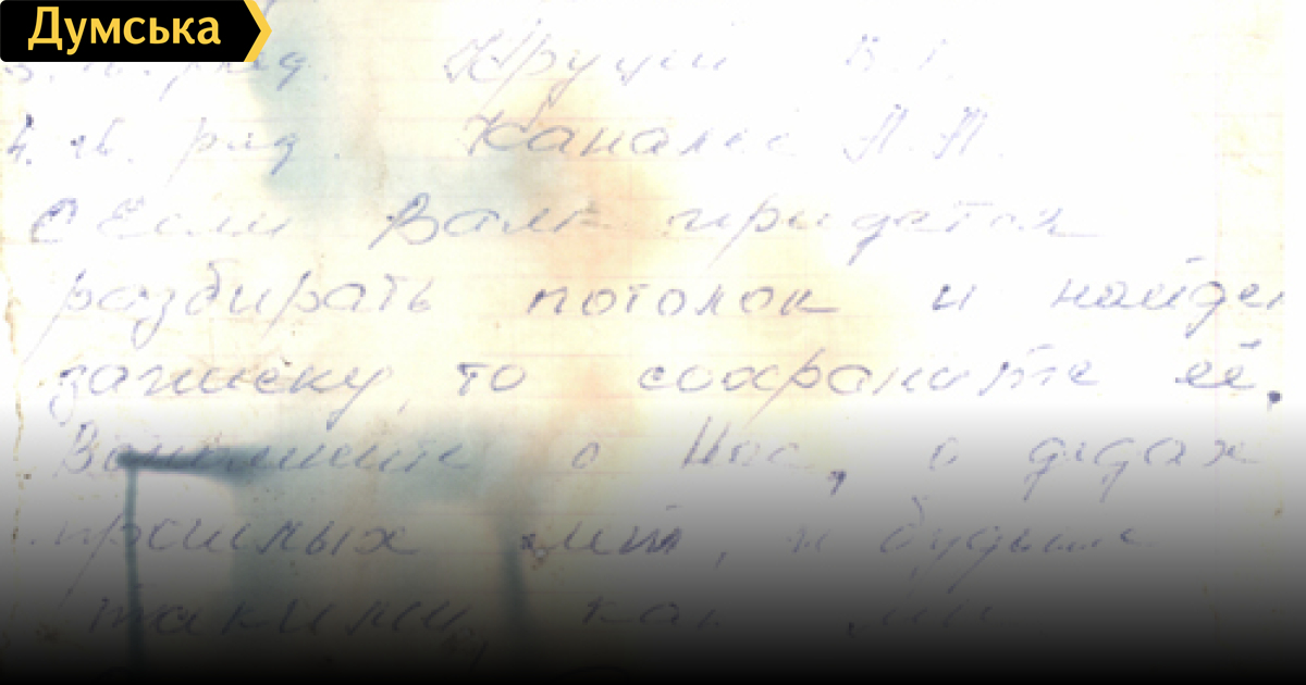 Если Вам придется разбирать потолок и найти записку, то сохраните ее. Вспомните о Нас, о дедах прошлых лет, и будьте такими, как Мы.