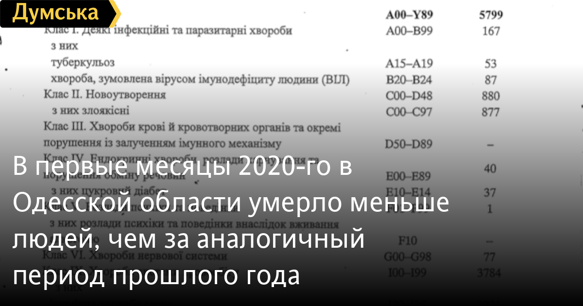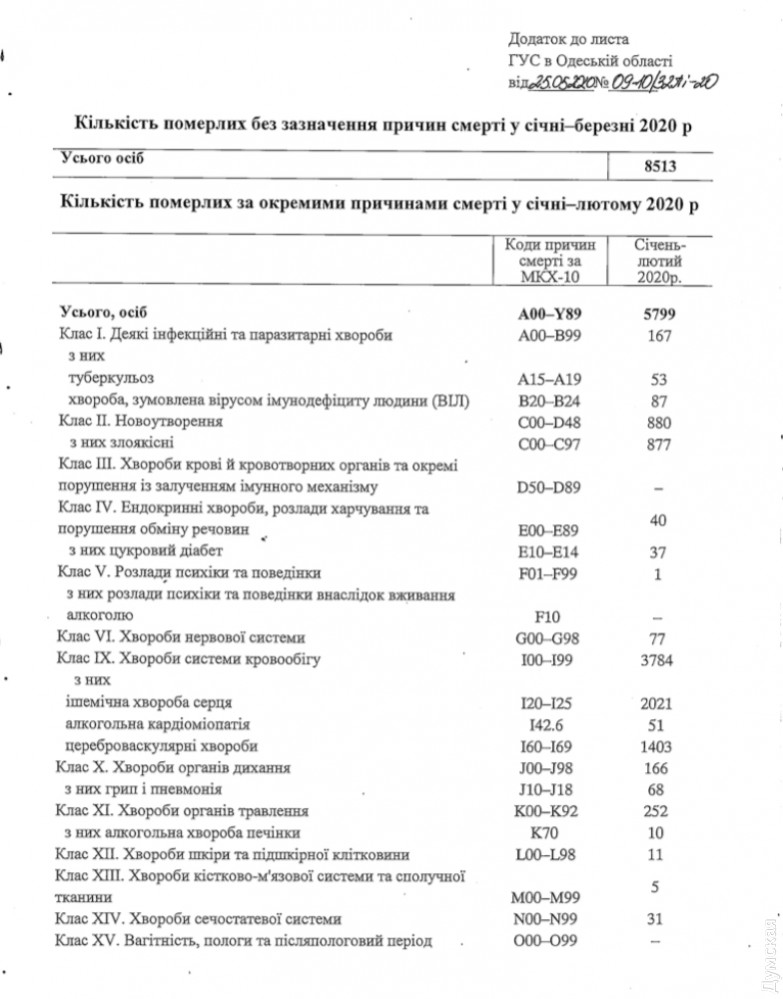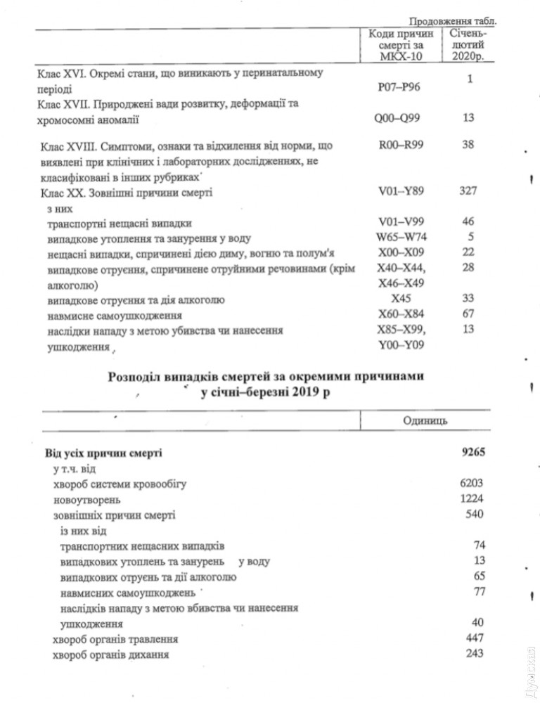 С января по апрель 2020 года умерло 8513 жителей Одесской области, что меньше, чем за аналогичный период 2019-го — 9265 человек.
