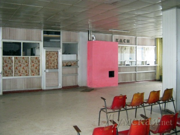 Автовокзал города Ананьева, что на севере Одесской области. Отопление — дровяное. Кто не догадался, гламурная штуковина в центре зала — это печь.