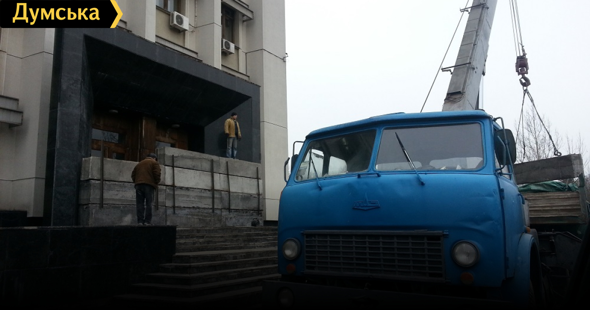Зря убирают, зря! Пошла вторая волна гнева майданутых надо бы еще укрепить центральный вход поставив КАМАЗ возле ступенек сделав проход в ширину 2 метра.