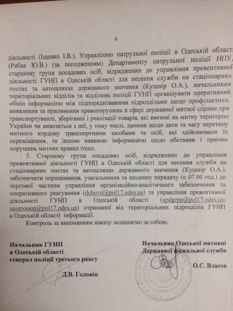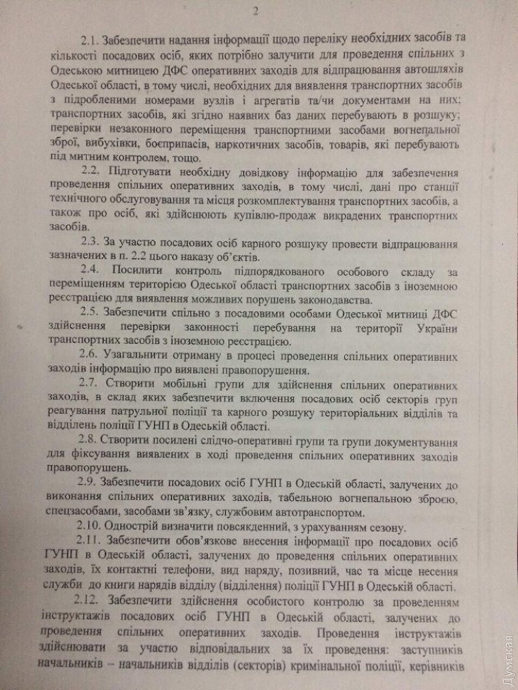 Оскільки даний наказ начальника поліції Одеської області та начальника ДФС Одеської області не зареєстровано в Міністерстві юстиції його законність є сумнівною. І на це є дві причини: або ті хто його готували не знають цього. Або це зроблено навмисно.