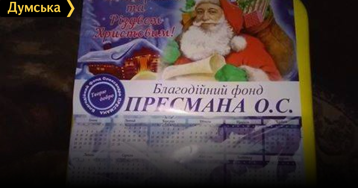 Санта Пресман: нардеп дарит избирателям календари со своим изображением в образе Деда Мороза (фотофакт)Народный депутат Александр Пресман продолжил начатую стратегию закрепления образа доброго волшебника и чудотворца в умах своих избирателей и их детей из 139-го округа. Так же как и в прошлом году, накануне праздников от имени нардепа жителям Лиманского, Раздельнянского района и Южного дарят сладкие подарки и новогодние календари, на которых изображен Дед Мороз с лицом, похожим на Александра Семеновича. СМЕРТЬ РОСІЙСЬКИМ ОКУПАНТАМ! Помітили помилку? Виділяйте слова з помилкою та натискайте control-enter