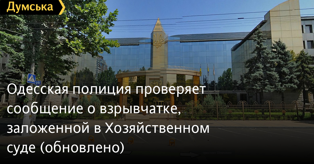 Одесская полиция проверяет сообщение о взрывчатке, заложенной в Хозяйственном суде (обновлено)Сегодня днем неизвестные сообщили о минировании здания Хозяйственного суда Одесской области, расположенного на проспекте Шевченко, 29. В настоящее время эксперты и полиция проверяют здание и прилегающую территорию на наличие взрывчатки. Всех сотрудников эвакуировали. ОБНОВЛЕНО: Информация о заложенной бомбе не подтвердилась. СМЕРТЬ РОССИЙСКИМ ОККУПАНТАМ! Заметили ошибку? Выделяйте слова с ошибкой и нажимайте control-enter |