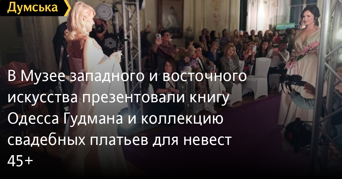 В Музее западного и восточного искусства презентовали книгу «Одесса Гудмана» и коллекцию свадебных платьев для невест 45+Вечером 22 сентября Музей западного и восточного искусства стал точкой притяжения для одесского бомонда – здесь стартовал пилотный проект фестиваля «Одесская Премьера». Главными событиями ивента стали презентация новой книги одесского поэта и философа Сержа Гудмана «Одесса Гудмана», а также показ свадебной коллекции от одесского дизайнера и фэшн-прогнозиста Ирины Сидорук. «Думская» побывала на светском мероприятии. Надо сказать, что Музей западного и восточного искусства как нельзя лучше подошел для такого мероприятия, ведь его роскошные интерьеры очень располагают к светским раутам. Вчера вечером здесь царила особая атмосфера – все эти пухленькие амуры, старинные комоды, древнеримские бюсты, подсвеченные софитами, казались еще более мистическими и вместе с тем по-домашнему уютными. На мраморных лестницах не умолкал стук каблучков, а музейные залы без конца озарялись вспышками фотокамер. Перед стартом официальной части гости проводили время в зоне фуршета, где можно было угоститься бокальчиком брюта и лавандовым макаруном, делали селфи у фотозоны и занимали лучшие места в главном зале. Первым на импровизированную сцену вышел инициатор встречи – поэт, мыслитель и благотворитель Серж Гудман. В октябре в печать выходит его вторая книга под названием «Одесса Гудмана». Издание посвящено Одессе разных лет и его именитым жителям. В частности, в жанре прозы и эпиграммы автор рассказывает про Романа Карцева, Георгия Делиева, Нонну Гришаеву и, конечно, Михаила Жванецкого, который, во многом и вдохновил Гудмана на написание книги. «Эта книга — продолжение того, что делали наши прекрасные литераторы. Недавно ушел Михаил Михайлович и мне хочется, чтобы литература Одессы звучала на весь мир, а не только в пределах города. Я надеюсь, что книга будет иметь продолжение, ведь я планирую дописывать о новых лицах. Я хочу, чтобы одесситы популяризировались и были примером для обычных граждан и для людей за границей», — говорит Серж Гудман. К слову, первая книга автора «ЖИВИ! Мысли, вдохновляющие жить» стала бестселлером, а сам Серж Гудман вошел в Топ-100 самых цитируемых авторов современности, пишущих на русском языке. «Мы разрываем стереотипы и говорим о том, что свою любовь можно найти в любом возрасте и выйти замуж. Это коллекция прогнозная 2023 года, она не содержит кружева, кристаллов и пайеток. Это лаконичная и минималистичная коллекция с элементами флористики из сатиновых тканей», — рассказывает Ирина Сидорук. Нужно было видеть, с каким достоинством и элегантностью дефилировали по подиуму модели. Снова почувствовать себя в роли невесты, признаются они, это непередаваемое чувство. Впрочем, самой взрослой из участниц только предстоит идти под венец. Прямо после показа, перед всем залом, ее возлюбленный сделал ей предложение руки и сердца и услышал в ответ «Да!». «Я вообще-то уже не планировала выходить замуж, у меня две дочки, три внучки. И я даже не думала, что в моем возрасте можно влюбиться и снова пережить такие же эмоции как в молодости. Сейчас я чувствую себя девочкой. Я сперва сомневалась, ведь это очень ответственный шаг, но потом подумала, что если души не умирают, то зачем мне его искать в следующей жизни», — 