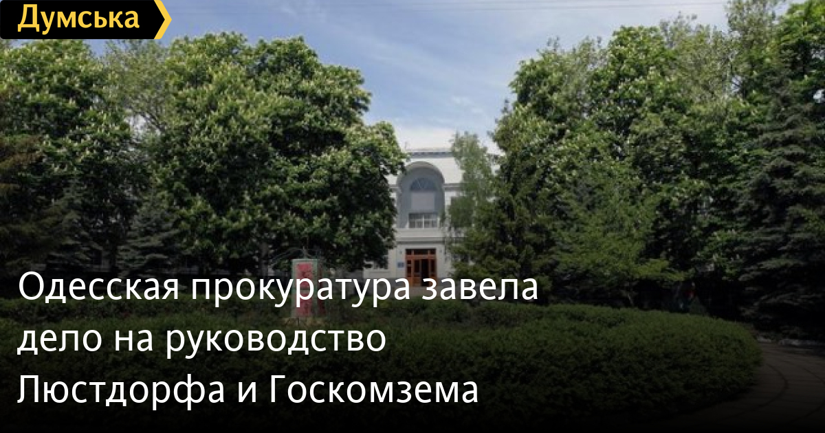Прокуратура Одесской области возбудила уголовное дело относительно служебных лиц санатория «Люстдорф» и отдела Госкомзема в Овидиопольском районе. Дело заведено по признакам преступлений, предусмотренных ч.3 ст.365 (превышение служебных полномочий) и ч.2 ст.364 (злоупотребление служебным положением) Уголовного кодекса Украины.