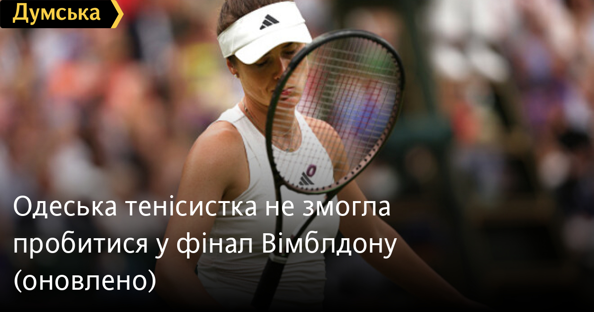Одеська тенісистка не змогла пробитися у фінал Вімблдону (оновлено)Одеська тенісистка Еліна Світоліна не змогла пробитися у фінал Вімблдону. В 1/2 першості українка у двох сетах поступилася чешці Маркеті Вондроушовій. Рахунок зустрічі — 3:6, 3:6. У фіналі турніру Маркета зіграє проти переможниці матчу Аріна Соболенко (Білорусь) — Онс Жабер (Туніс). ОНОВЛЕНО О 17:30. Спортивний оглядач «Думської» Віталій Хемій розповідає подробиці матчу. Суперниці розпочали поєдинок з упевнено взятих своїх подач — 2:2. Потім Еліна несподівано під нуль віддала свою подачу. З великими труднощами Світоліна повернула брейк. Поки всі передчували рівну боротьбу аж до тай-брейку, одеситка програла сім геймів поспіль! Потужні подачі Маркети, неактивний напад Еліни, мінімум ударів у протихід, провальні виходи до сітки, неточні удари — все це призвело до того, що під кінець години гри рахунок був 3:6, 0:4. Перспектив на перший для Еліни Світоліної фінал Великого шлему майже не було. Особливо українська спортсменка віддавала свої подачі у другому та четвертому геймах. Закінчувати можна було одним ударом, але удар цей слідував у сітку або аут. У п'ятому геймі на подачі Вондроушової за рахунку 40:15 Еліна почала повертатися в гру. У поєдинку, здавалося, настав перелом. Світоліна буквально витягла подачу суперниці, взяла свою, знову зробила брейк. І вже 3:4. Тут би брати свою подачу і користуватися тим, що Вондроушова відверто попливла. Але це була оманлива оцінка. Маркета спокійно взяла подачу Еліни, а потім і свою. 6:3, 6:3 - майже повторився сценарій зустрічі в олімпійському Токіо. Проте Вімблдон-2023 Еліна Світоліна може занести собі в актив. СМЕРТЬ РОСІЙСЬКИМ ОКУПАНТАМ! Помітили помилку? Виділяйте слова з помилкою та натискайте control-enter