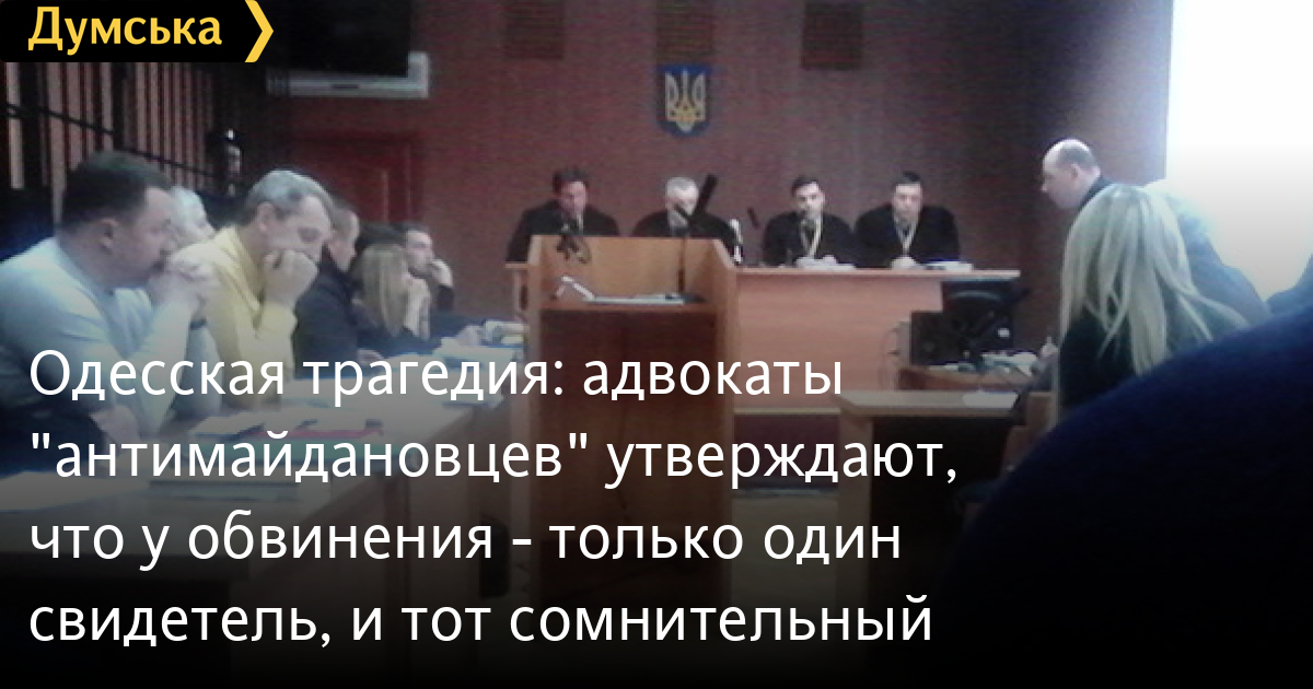 Сегодня на заседании Малиновского райсуда Одессы по делу о событиях 2 мая в центре города (Соборная и Греческая площади) часть обвиняемых и их защитники заявили, что у прокуратуры есть только один свидетель, и тот сомнительный.