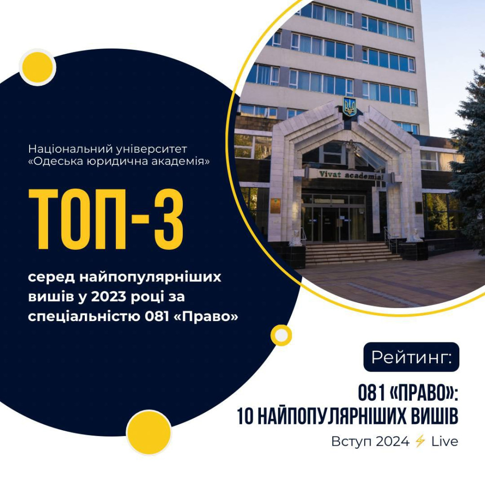 Одеська юридична академія вкотре увійшла до ТОП-3 найпопулярніших університетів України (на правах реклами)Національний університет «Одеська юридична академія» вкотре увійшов у ТОП-3 найпопулярніших університетів України. Це єдиний навчальний заклад, який представив Одесу в рейтингу «081 ПРАВО: 10 найпопулярніших вишів» від Вступ 2024 Live. Рейтинг базується на кількості поданих заяв на бакалаврат у 2023 році. За даними рейтингу, Одеська юридична академія отримала такі показники: - загальна кількість поданих заяв: 2 464; - кількість заяв на бюджетні місця: 1 504; - середній конкурсний бал абітурієнтів: 155,6. «Успіх НУ «ОЮА» свідчить про стабільно високий інтерес та перспективність юридичної освіти в південному регіоні, а також конкурентоспроможність випускників університету на ринку праці», — розповіли у виші. Помітили помилку? Виділяйте слова з помилкою та натискайте control-enter |