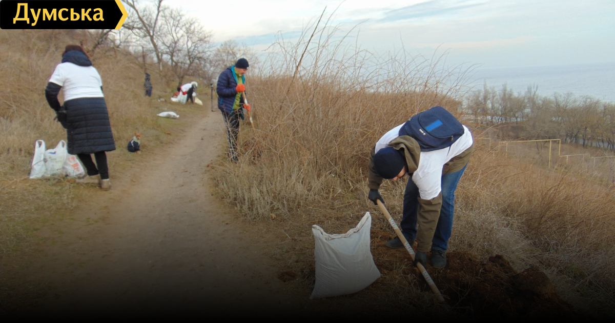 Одесская зима: на западное Рождество экоактивисты сажали павловнии на склонах вдоль моря