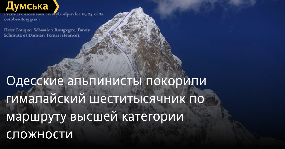 Покорение этого пика стало яркой финальной точкой в осенней Гималайской экспедиции 2016 года сборной альпинистской команды альпклуба «Одесса». Наши земляки поднялись на вершину по самому сложному маршруту, ребру Лагунак, высшей VI категории трудности. Спортсмены преодолели 1600 метров в альпийском стиле, что до них удавалось всего одной французской команде.